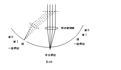 (1) 先将望远镜对准中央明纹,然后对准k=1的绿光,固定望远镜,从左右游标上读取数据,记录在表中。